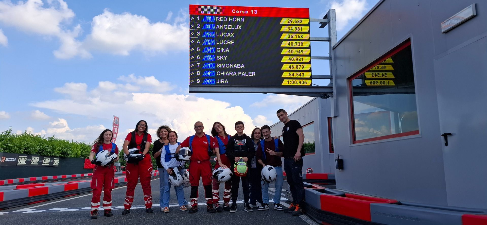 Uno dei momenti più belli è stato accompagnare studenti e volontari della Croce Rossa a bordo dei kart biposto, per far vivere loro in sicurezza l’emozione della pista.