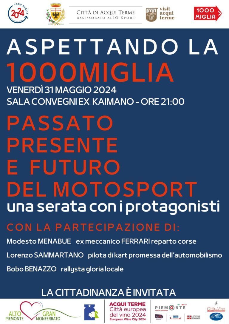 "Voglio esprimere un sincero ringraziamento al Comune di Acqui Terme per avermi invitato a partecipare alla serata organizzata in occasione del passaggio della gara storica delle Mille Miglia.
